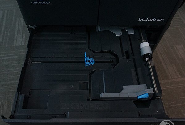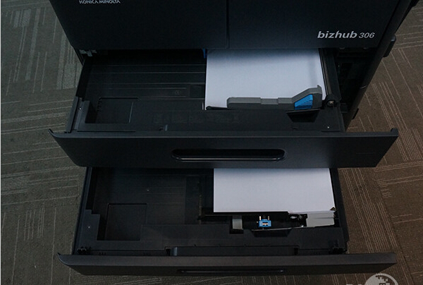 其實柯尼卡美能達306在出廠的時候僅僅是做為一款桌面級的復合機而使用,它只標配了一個進紙盒,標配的進紙盒容量為250張,并且支持紙張的尺寸為A3到A5。