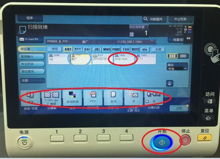 5)選中之前所創(chuàng)建的SMB項(xiàng),設(shè)置好掃描需求后點(diǎn)擊右下方發(fā)光的藍(lán)色開始鍵,回到電腦設(shè)置的文件夾中查找對于圖像即可